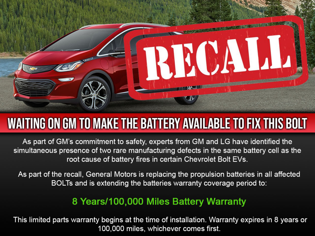 We also have many new Bolts in the same situation as the used Bolts. We will show them on our on-order page for Bolts – click here. You can reserve one of them and get notified once battery replacement is possible on them.
