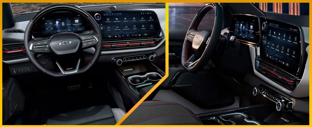 We like the exterior look of this truck. The front end is aggressive, and they tied the headlights together using a mean-looking led lighting system. In our opinion, it is the best-looking front end of any EV truck announced so far. The back end is a pretty standard Silverado look with additional accents around the taillights and the steps on the side of the bumper. The side styling is very reminiscent of the Avalanche with an extended c-pillar, and the accented wheel wells and roof make sure this vehicle’s profile will turn heads. The launch edition also included a panoramic sunroof that extends the entire width of the cabin and 24-inch aluminum wheels.