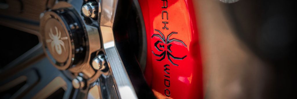 Interior: Custom upholstery with the Black Widow logo in the headrests, custom stitching, and red LED interior lights for a luxurious feel.