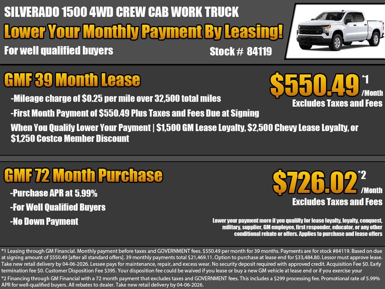 While we make every effort to ensure the data listed here is correct, there may be instances where some of the factory rebates, incentives, options or vehicle features may be listed incorrectly as we get data from multiple data sources, and in some instances, we are unable to change the information provided even if it is inaccurate, or such changes needed cannot happen in a timely manner. This happens occasionally with information provided by General Motors (GM) from its systems. PLEASE MAKE SURE to confirm the details of this vehicle (such as what factory rebates you may or may not qualify for) with the dealer to ensure its accuracy. Dealer cannot be held liable for data that is listed incorrectly due to errors on the part of GM or due to timeliness of updates such as the change in pricing at the beginning of a month.