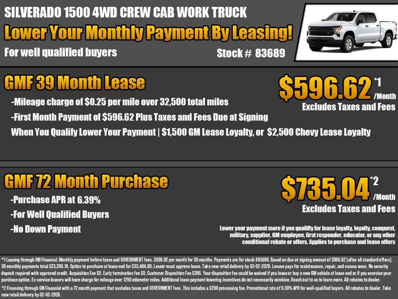 While we make every effort to ensure the data listed here is correct, there may be instances where some of the factory rebates, incentives, options or vehicle features may be listed incorrectly as we get data from multiple data sources, and in some instances, we are unable to change the information provided even if it is inaccurate, or such changes needed cannot happen in a timely manner. This happens occasionally with information provided by General Motors (GM) from its systems. PLEASE MAKE SURE to confirm the details of this vehicle (such as what factory rebates you may or may not qualify for) with the dealer to ensure its accuracy. Dealer cannot be held liable for data that is listed incorrectly due to errors on the part of GM or due to timeliness of updates such as the change in pricing at the beginning of a month.