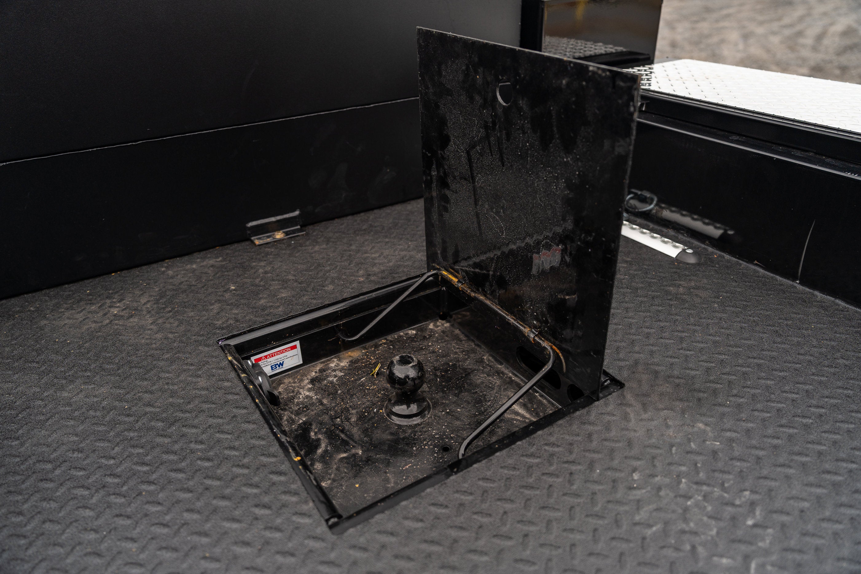 - Shows a close-up view of the trailer hitch1