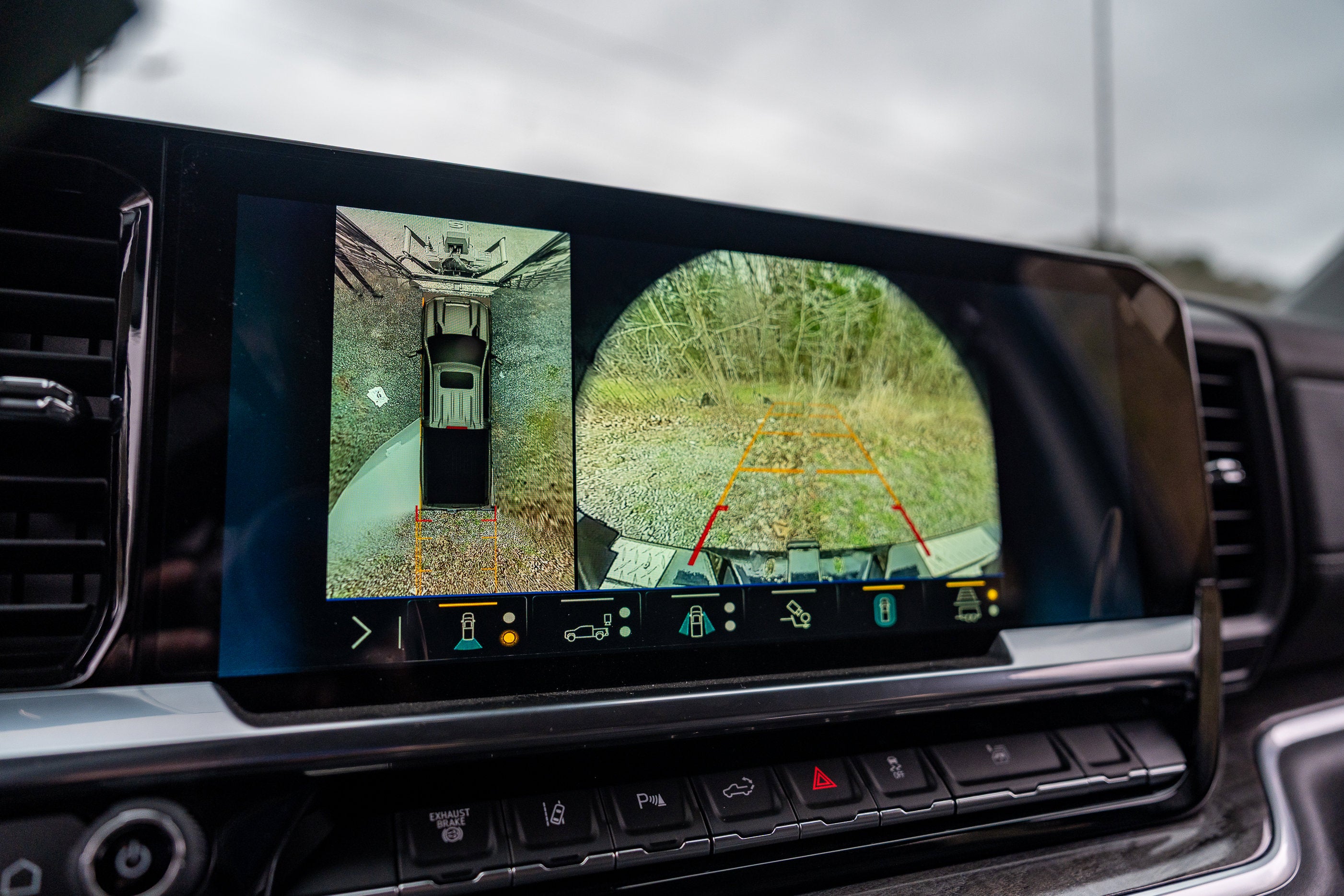 - Camera in the Center High Mount Stop Lamp (CHMSL) provides an elevated view of the truck bed from the back of the cab1
