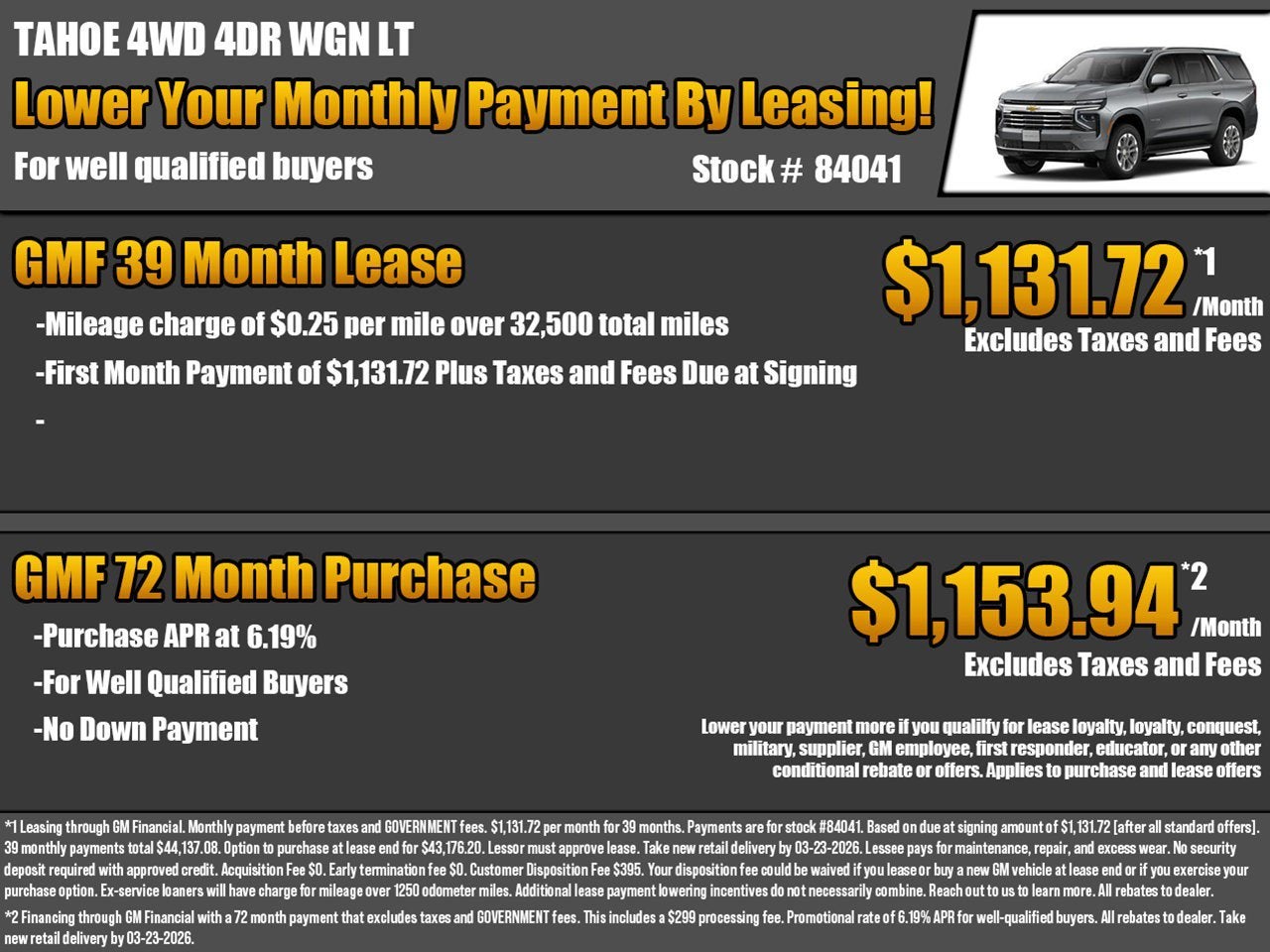 While we make every effort to ensure the data listed here is correct, there may be instances where some of the factory rebates, incentives, options or vehicle features may be listed incorrectly as we get data from multiple data sources, and in some instances, we are unable to change the information provided even if it is inaccurate, or such changes needed cannot happen in a timely manner. This happens occasionally with information provided by General Motors (GM) from its systems. PLEASE MAKE SURE to confirm the details of this vehicle (such as what factory rebates you may or may not qualify for) with the dealer to ensure its accuracy. Dealer cannot be held liable for data that is listed incorrectly due to errors on the part of GM or due to timeliness of updates such as the change in pricing at the beginning of a month.