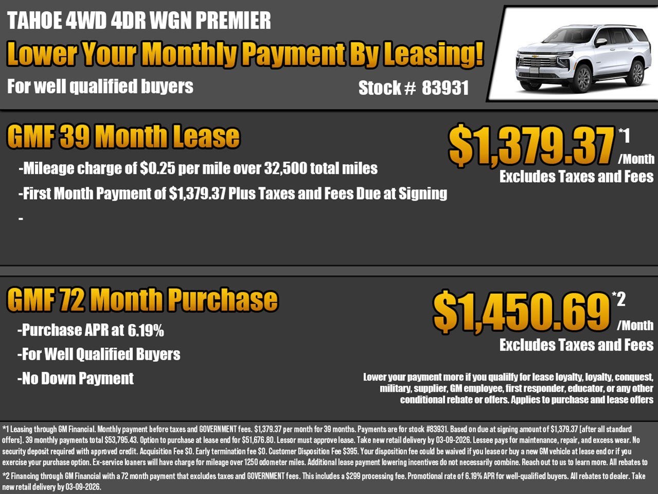 While we make every effort to ensure the data listed here is correct, there may be instances where some of the factory rebates, incentives, options or vehicle features may be listed incorrectly as we get data from multiple data sources, and in some instances, we are unable to change the information provided even if it is inaccurate, or such changes needed cannot happen in a timely manner. This happens occasionally with information provided by General Motors (GM) from its systems. PLEASE MAKE SURE to confirm the details of this vehicle (such as what factory rebates you may or may not qualify for) with the dealer to ensure its accuracy. Dealer cannot be held liable for data that is listed incorrectly due to errors on the part of GM or due to timeliness of updates such as the change in pricing at the beginning of a month.