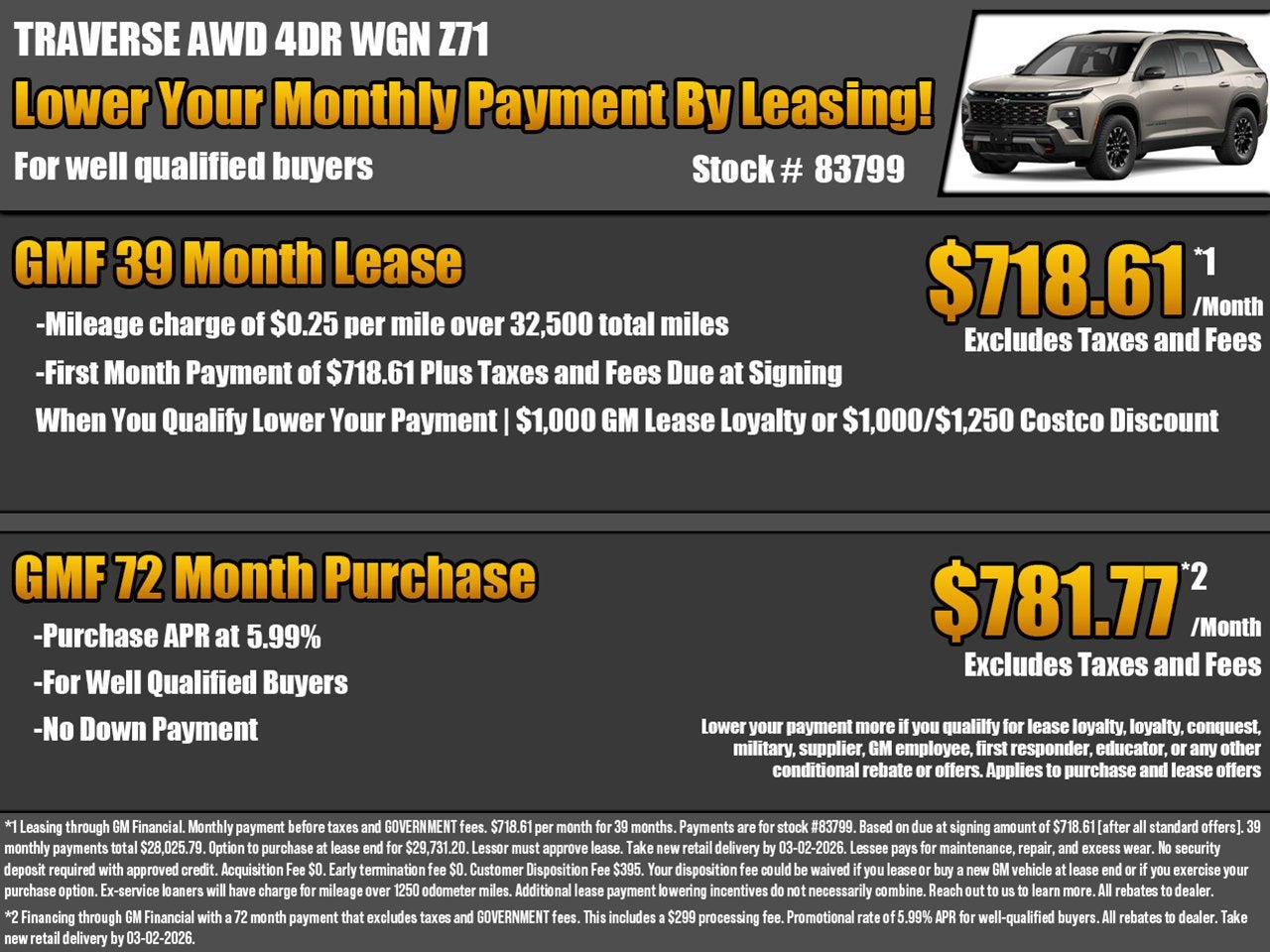 GM US Chevrolet GMF Bonus Cash Program - 26-40ARQualification: This program must be used to reduce the amount financed through one of the GM Financial Promotional Rate Programs (26-40GD-* or 26-40GC-*)$500