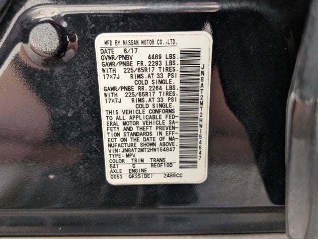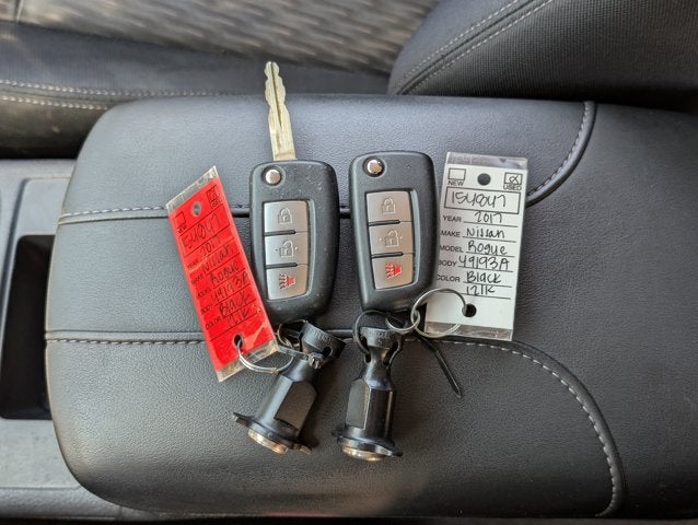 If you wish to have vehicle shipped to you, that is a separate charge determined by distance. Please use the listed price as the most up to date price. Lavishly luxurious, this 2017 Nissan Rogue represents a seamless convergence of unparalleled power and beauty. With a Regular Unleaded I-4 2.5 L/152 engine powering this Variable transmission, this ride is an intoxicating mix of precise machining and charm. It's loaded with the following options: MAGNETIC BLACK, CHARCOAL, CLOTH SEAT TRIM, [Z66] ACTIVATION DISCLAIMER, [L92] FLOOR MATS & 2-PC CARGO AREA PROTECTOR -inc: 2-pc front and 2-pc 2nd row floor mats, [B93] CHROME REAR BUMPER PROTECTOR, [B92] BLACK SPLASH GUARDS (SET OF 4), Wireless Phone Connectivity, Wheels: 17" Steel w/Full Covers, Wheels w/Full Wheel Covers, and Variable Intermittent Wipers . The Accessories include 2 Master Keys.