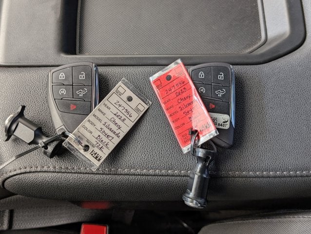 If you wish to have vehicle shipped to you, that is a separate charge determined by distance. Please use the listed price as the most up to date price. This vehicle has a notation on the Carfax that it was reacquired by the manufacturer. Simply put, the customer had a complaint about the vehicle and asked the manufacturer to take the car back. As a result, the trade value or selling price you will get for this vehicle is likely to be lower than for a similar vehicle that was not reacquired. This is reflected in the price you are paying for the vehicle now and why the vehicle is less expensive than a similar one that was not reacquired. In time, the difference in value between this vehicle and a normal vehicle will shrink. Therefore, if you plan to keep the vehicle for an extended period of time you will likely capture more of the savings of the lower price than if you sell or trade the vehicle within a short period after purchasing it. Solid and stately, this 2023 Chevrolet Silverado 1500 practically sings Puccini. With a Turbocharged Gas I4 2.7L/166 engine powering this Automatic transmission, it is a vastly understated assertion of your dominion over the open road. It's loaded with the following options: WHEELS, 20" X 9" (50.8 CM X 22.9 CM) PAINTED ALUMINUM with machine face and Grazen Painted pockets, WHEEL, 17" X 8" (43.2 CM X 20.3 CM) FULL-SIZE, ALUMINUM SPARE, TRANSMISSION, 8-SPEED AUTOMATIC, ELECTRONICALLY CONTROLLED with overdrive and tow/haul mode. Includes Cruise Grade Braking and Powertrain Grade Braking (STD), TIRES, 275/60R20 ALL-SEASON, BLACKWALL, TIRE, SPARE 255/80R17SL ALL-SEASON, BLACKWALL, THEFT-DETERRENT SYSTEM, UNAUTHORIZED ENTRY, SUSPENSION PACKAGE, HIGH CAPACITY, SEATS, FRONT 40/20/40 SPLIT-BENCH with covered armrest storage and under-seat storage (lockable) (STD), REMOTE VEHICLE STARTER SYSTEM, and REMOTE START PACKAGE includes (BTV) Remote Start, (UTJ) content theft alarm and (C49) rear-window defogger . It was previously reacquired by the manufacturer for a non-conformity to the warranty (Engine Failing). All necessary repairs were completed. The Accessories include 2 Master Keys.