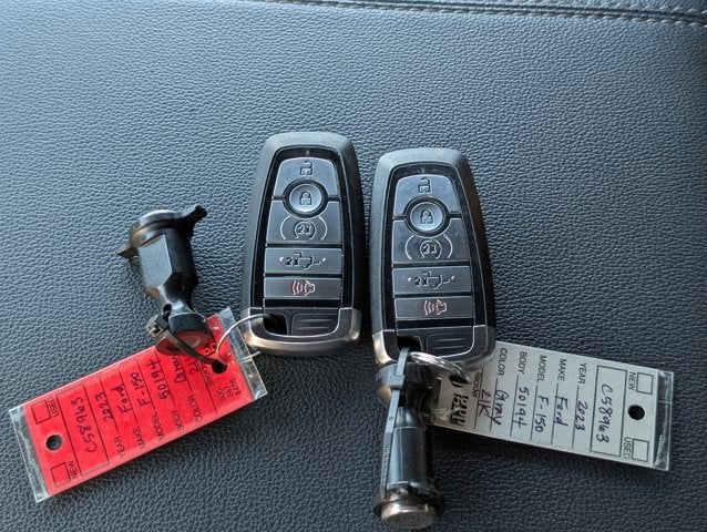 If you wish to have vehicle shipped to you, that is a separate charge determined by distance. Please use the listed price as the most up to date price. Sophisticated, smart, and stylish, this 2023 Ford F-150 represents a faultless convergence of unparalleled power and beauty. With a PowerBoost Full-Hybrid V6 3.5 L engine powering this Automatic transmission, it is a vastly understated expression of your dominion over the open road. It's outfitted with the following options: ENGINE: 3.5L POWERBOOST FULL-HYBRID V6 -inc: Electronic Locking w/3.73 Axle Ratio, GVWR: 7,350 lbs Payload Package, Dual Zone Electronic Automatic Temperature Control, Wheels: 17" Silver Painted Aluminum, Variable Intermittent Wipers, Urethane Gear Shifter Material, Trip Computer, Transmission: Electronic 10-Speed Automatic -inc: selectable drive modes: normal, ECO, sport, tow/haul, slippery, deep snow/sand and mud/rut, Transmission w/Driver Selectable Mode, Trailer Wiring Harness, Towing Equipment -inc: Trailer Sway Control, and Tires: 265/70R17 BSW A/T . The Accessories include 2 Master Keys.