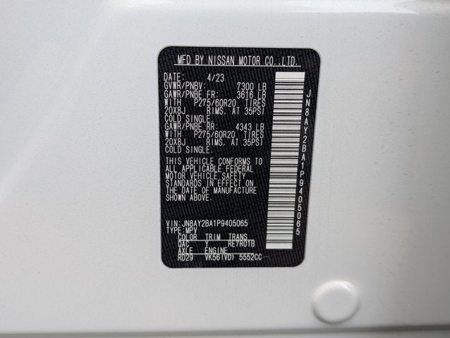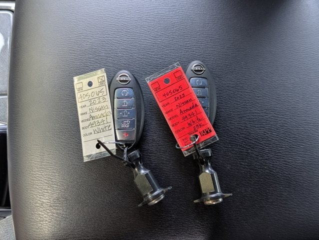 If you wish to have vehicle shipped to you, that is a separate charge determined by distance. Please use the listed price as the most up to date price. This vehicle is equipped with bucket seats in the second row. Passengers will enjoy a more comfortable ride and accessing the third row is easier. Sophisticated, smart, and stylish, this 2023 Nissan Armada will envelope you in well- engineered charm and security. With a Regular Unleaded V-8 5.6 L/339 engine powering this Automatic transmission, you will take joy in the thrilling ease with which you commandeer the highway. It's outfitted with the following options: MIDNIGHT EDITION, LEATHER APPOINTED SEAT TRIM, ASPEN WHITE TRICOAT, [X01] CAPTAIN'S CHAIRS PACKAGE -inc: Seating revised from 8 to 7 passengers, 2nd Row Captain's Chairs, 2nd Row Center Console w/Padded Armrest, [N92] ILLUMINATED KICK PLATES, [K11] MIDNIGHT EDITION FLOOR MATS & CARGO MAT, [K01] MIDNIGHT EDITION PACKAGE -inc: black exterior logos, black interior headliner and black interior trim, Rear LED Lamps w/Black Paint Finisher, Wheels: 20" x 8J Aluminum Alloy, 12-spoke, Cargo Mat & Midnight Edition Floor Mats, Black Painted Roof Rails, Front & Rear Lower Center Bumper Fascias, Black painted, Black Painted Grille, Tires: 20", Auto-Dimming Exterior Mirror w/LED Turn Signals, Black painted, heated, power adjust and folding and reverse linked w/puddle lights, [G01] MID-YEAR CHANGE, Window Grid Diversity Antenna, Wheels: 20" x 8J Painted Alloy -inc: 18-spoke, and Valet Function . The Accessories include 2 Master Keys and Owner's Manual.
