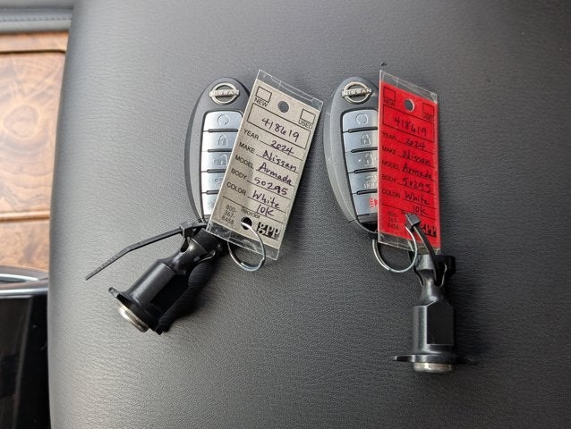 If you wish to have vehicle shipped to you, that is a separate charge determined by distance. Please use the listed price as the most up to date price. Lavishly luxurious, this 2024 Nissan Armada is a meticulous collaboration between pleasantness and polish. With a Regular Unleaded V-8 5.6 L/339 engine powering this Automatic transmission, it is an understated expression of your dominion over the open road. It's outfitted with the following options: CHARCOAL, LEATHER-APPOINTED SEAT TRIM, ASPEN WHITE TRICOAT, [X01] CAPTAIN'S CHAIRS PACKAGE -inc: Seating revised from 8 to 7 passengers, 2nd Row Captain's Chairs, 2nd Row Center Console w/Padded Armrest, [N92] ILLUMINATED KICK PLATES, [M92] CARGO PACKAGE -inc: cargo area protector, cargo net and first aid kit, [L93] 3RD ROW CARPETED FLOOR MATS - CAPTAIN SEAT -inc: carpeted cargo mat, [H92] NISSAN USB CHARGING CABLE SET, Wireless Phone Connectivity, Window Grid Diversity Antenna, and Wheels: 20" x 8J Painted Alloy -inc: 18-spoke, Machined finish . The Accessories include 2 Master Keys.