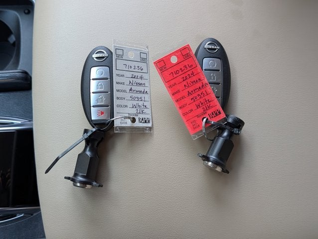 This vehicle is online but not yet available for sale. If you would like to put a deposit you can reserve the vehicle to purchase as soon as it is available. We are waiting for the title to clear the system so we can process paperwork. If you wish to have vehicle shipped to you, that is a separate charge determined by distance. Please use the listed price as the most up to date price. Bold and beautiful, this 2024 Nissan Armada is a meticulous collaboration between pleasantness and polish. With a Regular Unleaded V-8 5.6 L/339 engine powering this Automatic transmission, you will marvel at this ultimate collaboration between the forces of mother nature and the laws of physics. It's outfitted with the following options: ASPEN WHITE TRICOAT, ALMOND, LEATHERETTE SEAT TRIM, [M92] CARGO PACKAGE -inc: cargo area protector, cargo net and first aid kit, [L92] 3RD ROW CARPETED FLOOR MATS - BENCH SEAT -inc: carpeted cargo mat, Wireless Phone Connectivity, Window Grid Diversity Antenna, Wheels: 18" x 8J Alloy, Wheels w/Silver Accents, Valet Function, and Trunk/Hatch Auto-Latch . The Accessories include 2 Master Keys.