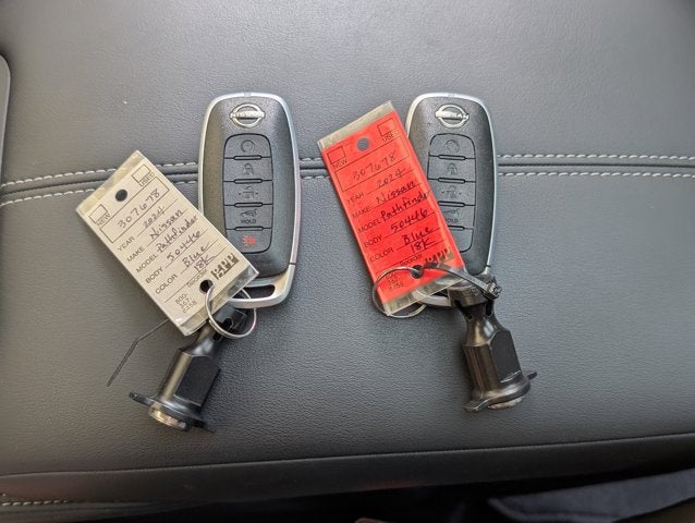 If you wish to have vehicle shipped to you, that is a separate charge determined by distance. Please use the listed price as the most up to date price. Bold and beautiful, this 2024 Nissan Pathfinder represents a seamless convergence of unparalleled power and beauty. With a Regular Unleaded V-6 3.5 L/213 engine powering this Automatic transmission, it is a vastly understated expression of your dominion over the open highway. It's loaded with the following options: DEEP OCEAN BLUE PEARL, CHARCOAL, SEMI-ANILINE LEATHER-APPOINTED SEATING SURFACES -inc: quilting, [M92] CARGO PACKAGE -inc: dividers and console net, Cargo Area Protector, Cargo Net, First Aid Kit, [L92] BENCH SEAT CARPETED FLOOR MATS (SET OF 4), [H92] NISSAN USB CHARGING CABLE SET, [B93] CROSS BARS, [B92] BLACK SPLASH GUARDS (SET OF 4), Wireless Phone Connectivity, Window Grid And Fixed Antenna, and Wheels: 20" x 8J Machined Alloy -inc: dark metallic gray finish . The Accessories include 2 Master Keys.