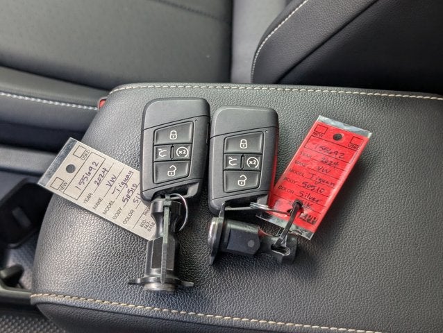 If you wish to have vehicle shipped to you, that is a separate charge determined by distance. Please use the listed price as the most up to date price. This vehicle has a notation on the Carfax that it was reacquired by the manufacturer. Simply put, the customer had a complaint about the vehicle and asked the manufacturer to take the car back. As a result, the trade value or selling price you will get for this vehicle is likely to be lower than for a similar vehicle that was not reacquired. This is reflected in the price you are paying for the vehicle now and why the vehicle is less expensive than a similar one that was not reacquired. In time, the difference in value between this vehicle and a normal vehicle will shrink. Therefore, if you plan to keep the vehicle for an extended period of time you will likely capture more of the savings of the lower price than if you sell or trade the vehicle within a short period after purchasing it. Elegantly expressive, this 2024 Volkswagen Tiguan is a meticulous collaboration between pleasantness and polish. With a Intercooled Turbo Regular Unleaded I-4 2.0 L/121 engine powering this Automatic transmission, you'll delight in the astounding ease with which you commandeer the highway. It is well equipped with the following options: Wireless Phone Connectivity, Window Grid And Roof Mount Diversity Antenna, Wheels: 18" Dark Graphite Painted 10-Spoke Alloy, Wheels w/Locks, VW Car-Net Safe & Secure 5-year Tracker System, VW Car-Net Safe & Secure 5-year Emergency Sos Capability, Trunk/Hatch Auto-Latch, Trip Computer, Travel Assist (semi-automated driving assistance), and Transmission: 8-Speed Automatic w/Tiptronic -inc: driving mode selection . It was previously reacquired by the manufacturer for a non-conformity to the warranty (MMI and carnet screen inop). All necessary repairs were completed. The Accessories include 1 Master Key.