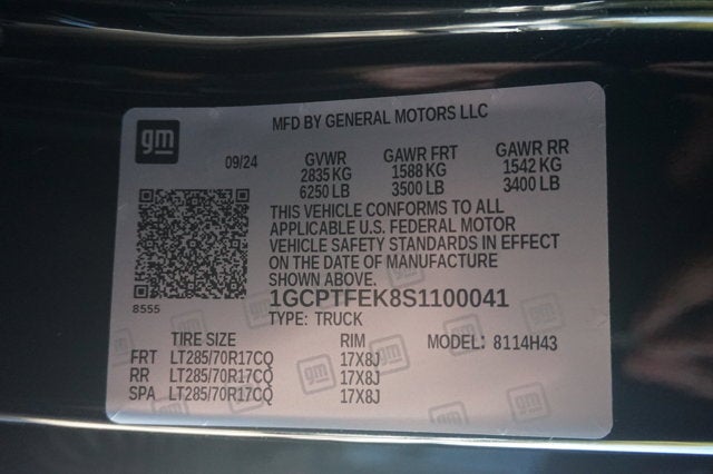 If you wish to have vehicle shipped to you, that is a separate charge determined by distance. Please use the listed price as the most up to date price. Boasting exemplary craftsmanship, this 2025 Chevrolet Colorado is a meticulous collaboration between pleasantness and polish. With a Turbocharged Gas I4 2.7L/ engine powering this Automatic transmission, it is a vastly understated assertion of your dominion over the open road. It comes equipped with these options: ZR2 PREFERRED EQUIPMENT GROUP includes standard equipment, UNDERBODY CAMERAS forward and rearward facing views, cameras with wash functionality, TRANSMISSION, 8-SPEED AUTOMATIC (STD), TIRE, SPARE LT285/70R17, BLACKWALL, SUNROOF, POWER SLIDING GLASS WITH MANUAL SHADE, SEATS, FRONT BUCKET (STD), REAR PEDESTRIAN ALERT, REAR AXLE, 3.42 RATIO, LPO, BLACK NAMEPLATES (dealer-installed), and LICENSE PLATE KIT, FRONT (will be shipped to orders with ship-to states that require front license plate) . The accessories include 2 Master Keys.