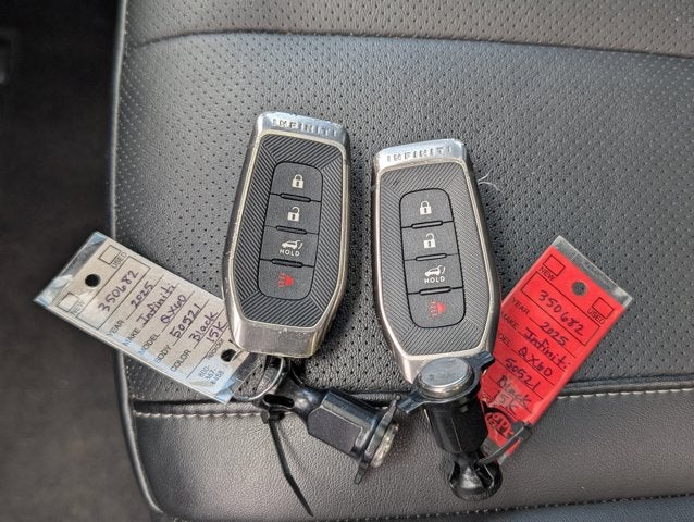 If you wish to have vehicle shipped to you, that is a separate charge determined by distance. Please use the listed price as the most up to date price. Grand and graceful, this 2025 INFINITI QX60 practically sings Puccini. With a Intercooled Turbo Premium Unleaded I-4 2.0 L/122 engine powering this Automatic transmission, it is an understated expression of your dominion over the open highway. It's loaded with the following options: MINERAL BLACK, GRAPHITE, LEATHER-APPOINTED SEATING SURFACES, [S55] LITERATURE KIT, [L11] FLOOR MATS W/BENCH SEATS ON 3RD ROW TRAY, [E10] PREMIUM PAINT, [B92] SPLASH GUARDS, Wireless Phone Connectivity, Window Grid And Roof Mount Diversity Antenna, Wheels: 18" x 8J Machined Aluminum Alloy -inc: charcoal metallic finish, and Valet Function . The Accessories include 2 Master Keys.