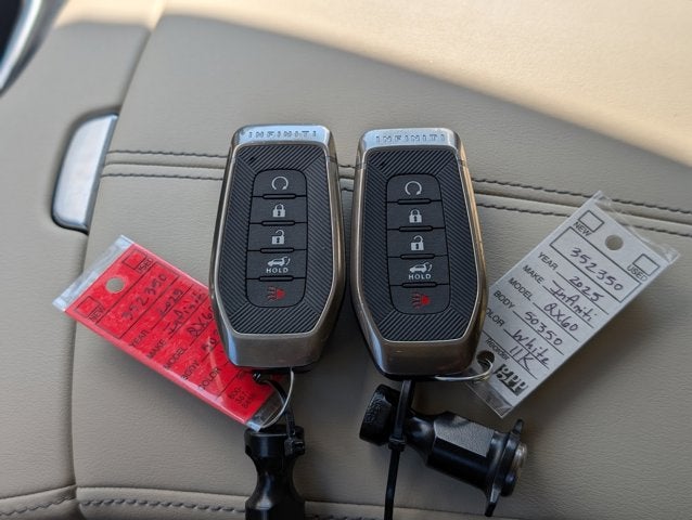 This vehicle is online but not yet available for sale. If you would like to put a deposit you can reserve the vehicle to purchase as soon as it is available. We are waiting for the title to clear the system so we can process paperwork. If you wish to have vehicle shipped to you, that is a separate charge determined by distance. Please use the listed price as the most up to date price. Racy yet refined, this 2025 INFINITI QX60 is a meticulous collaboration between pleasantness and polish. With a Intercooled Turbo Premium Unleaded I-4 2.0 L/122 engine powering this Automatic transmission, you'll marvel at this unique synergy between the forces of mother nature and the laws of physics. It's loaded with the following options: SANDSTONE, LEATHER-APPOINTED SEATING SURFACES, MAJESTIC WHITE, [V01] VISION PACKAGE -inc: Smart Rear View Mirror, 10.8" Head-Up Display, Adaptive Front Lighting System, auto-leveling function, [S55] LITERATURE KIT, [L11] FLOOR MATS W/BENCH SEATS ON 3RD ROW TRAY, [K11] ILLUMINATED KICK PLATE, [E10] PREMIUM PAINT, [B93] SILVER CROSS BAR, [B92] SPLASH GUARDS, and Wireless Phone Connectivity . The Accessories include 2 Master Keys.