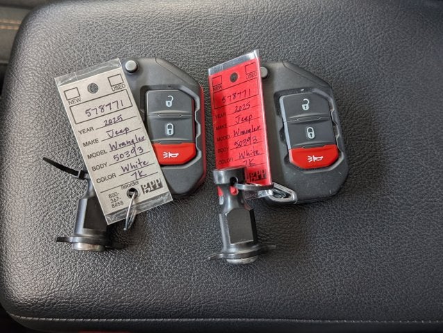 If you wish to have vehicle shipped to you, that is a separate charge determined by distance. Please use the listed price as the most up to date price. Lavishly luxurious, this 2025 Jeep Wrangler 4xe represents a faultless convergence of unparalleled power and beauty. With a Intercooled Turbo Gas/Electric I-4 2.0 L/122 engine powering this Automatic transmission, it is a vastly understated assertion of your dominion over the open highway. It comes equipped with these options: TRANSMISSION: 8-SPEED AUTO 8P75PH PHEV (STD), QUICK ORDER PACKAGE 29W WILLYS 4XE -inc: Engine: 2.0L I4 DOHC DI Turbo PHEV, Transmission: 8-Speed Auto 8P75PH PHEV, Class II Receiver Hitch, 7 & 4 Pin Wiring Harness, Willys 4xe Hood Decal, Conventional Differential Front Axle, Off-Road Plus Mode, 4-Wheel Drive Swing Gate Decal, Black Grille, Rock Protection Sill Rails, 97 MPH Vehicle Max Speed Calibration, Front LED Fog Lamps, LED Premium Reflector Headlamps, Auxiliary Switches, E-Locker Rear Axle, Molded in Color Rubicon Highline Flare, FRONT LICENSE PLATE BRACKET, ENGINE: 2.0L I4 DOHC DI TURBO PHEV (STD), BRIGHT WHITE CLEARCOAT, BLACK, CLOTH LOW-BACK BUCKET SEATS, BLACK 3-PIECE HARD TOP -inc: Freedom Panel Storage Bag, Rear Window Defroster, Rear Window Wiper/Washer, Wireless Phone Connectivity, Window Grid Antenna, and Willy's Suspension . The Accessories include 2 Master Keys.